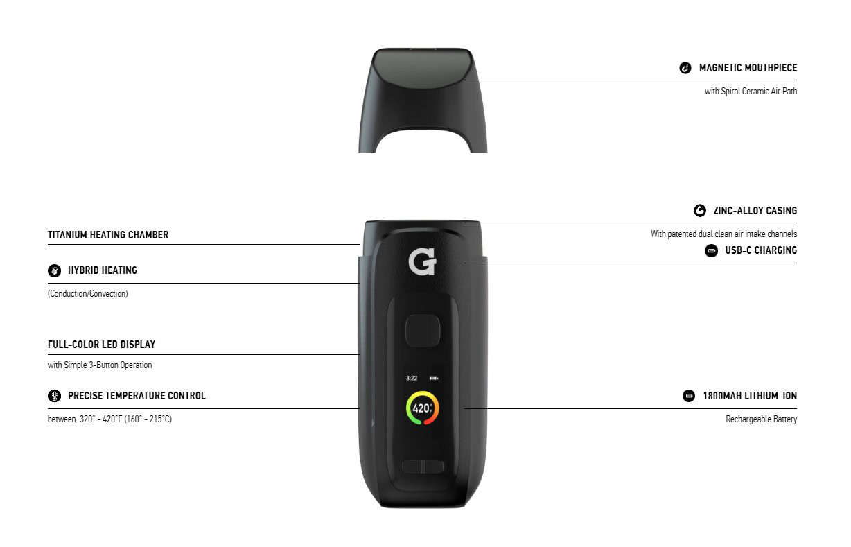 Hybrid Heating Technology: Combines convection and conduction heating for fast and even vaporization